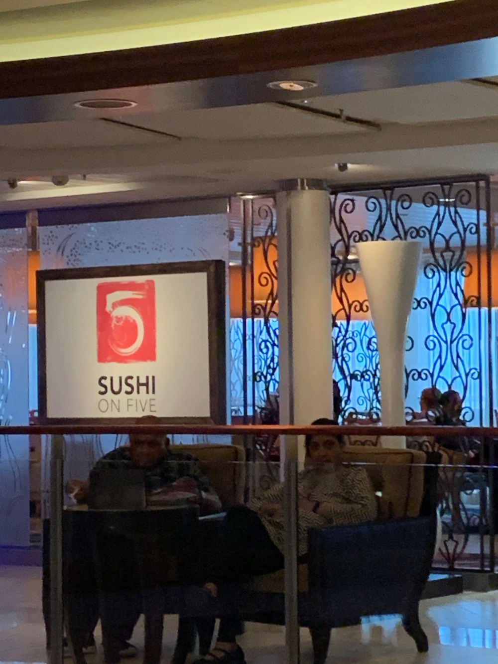 •Sushi on 5, 18:00 – 22:00pm deck 5 (takeaways available & delivery to stateroom)