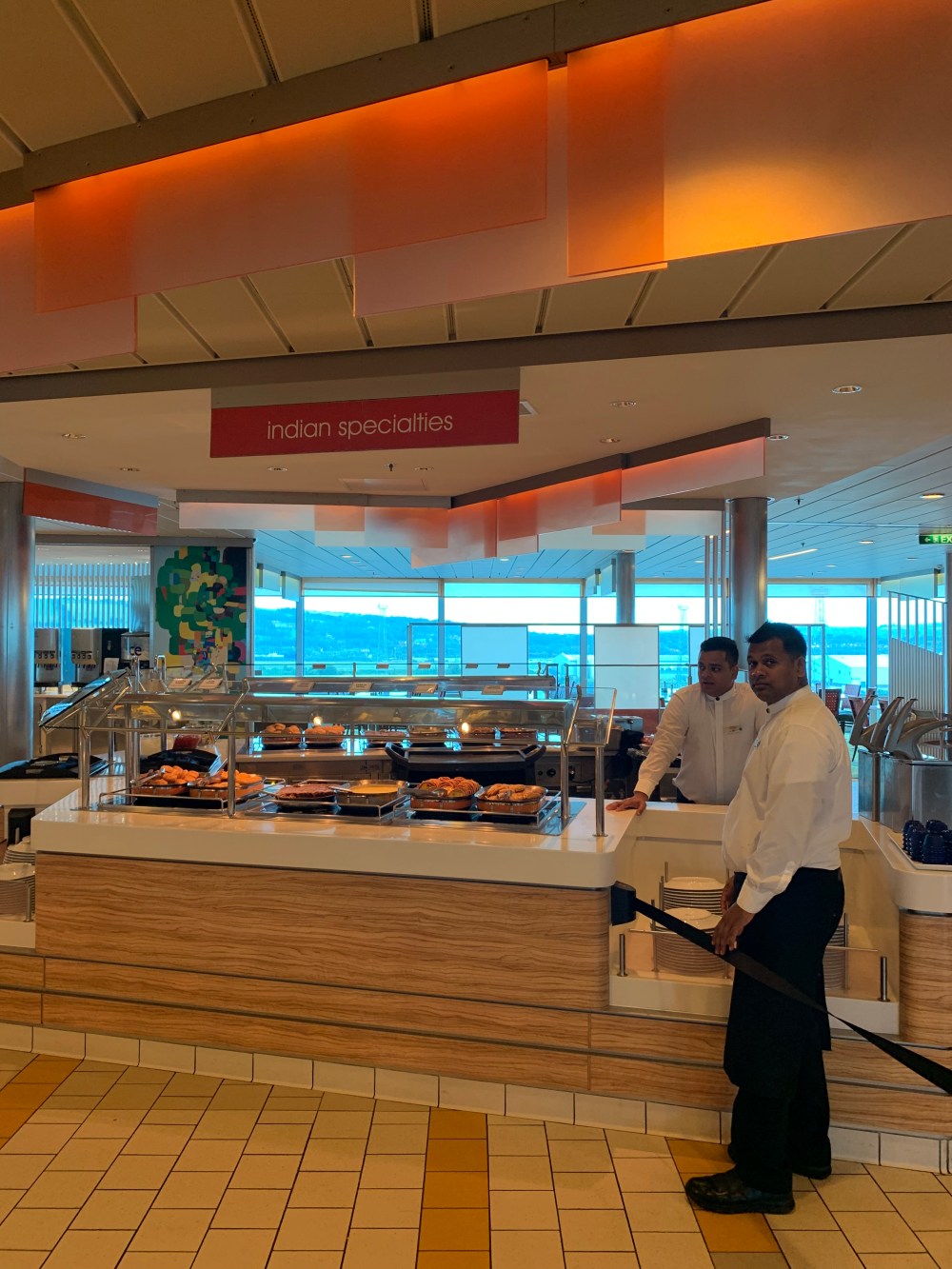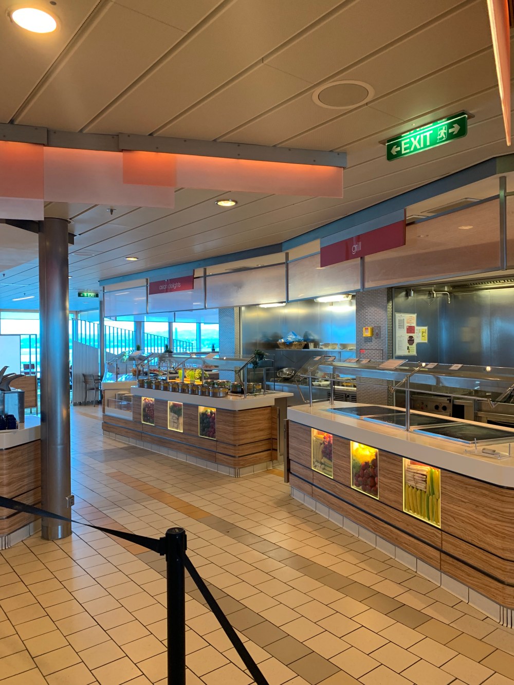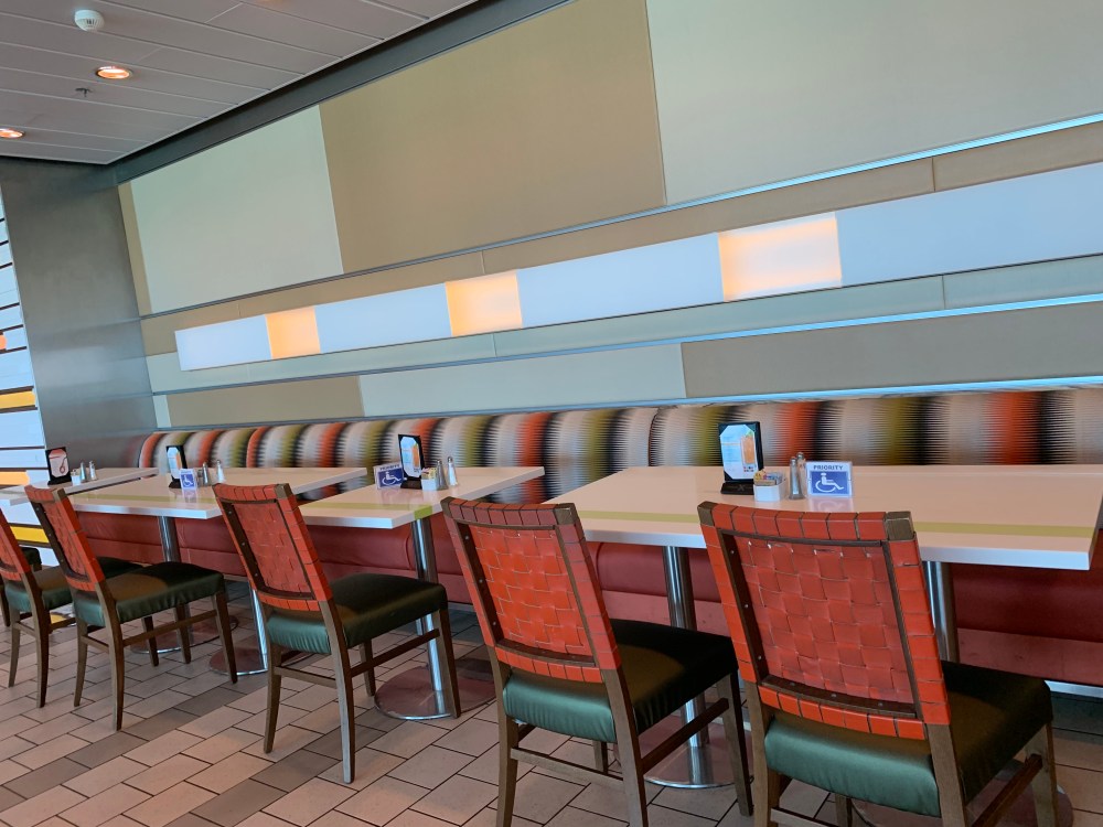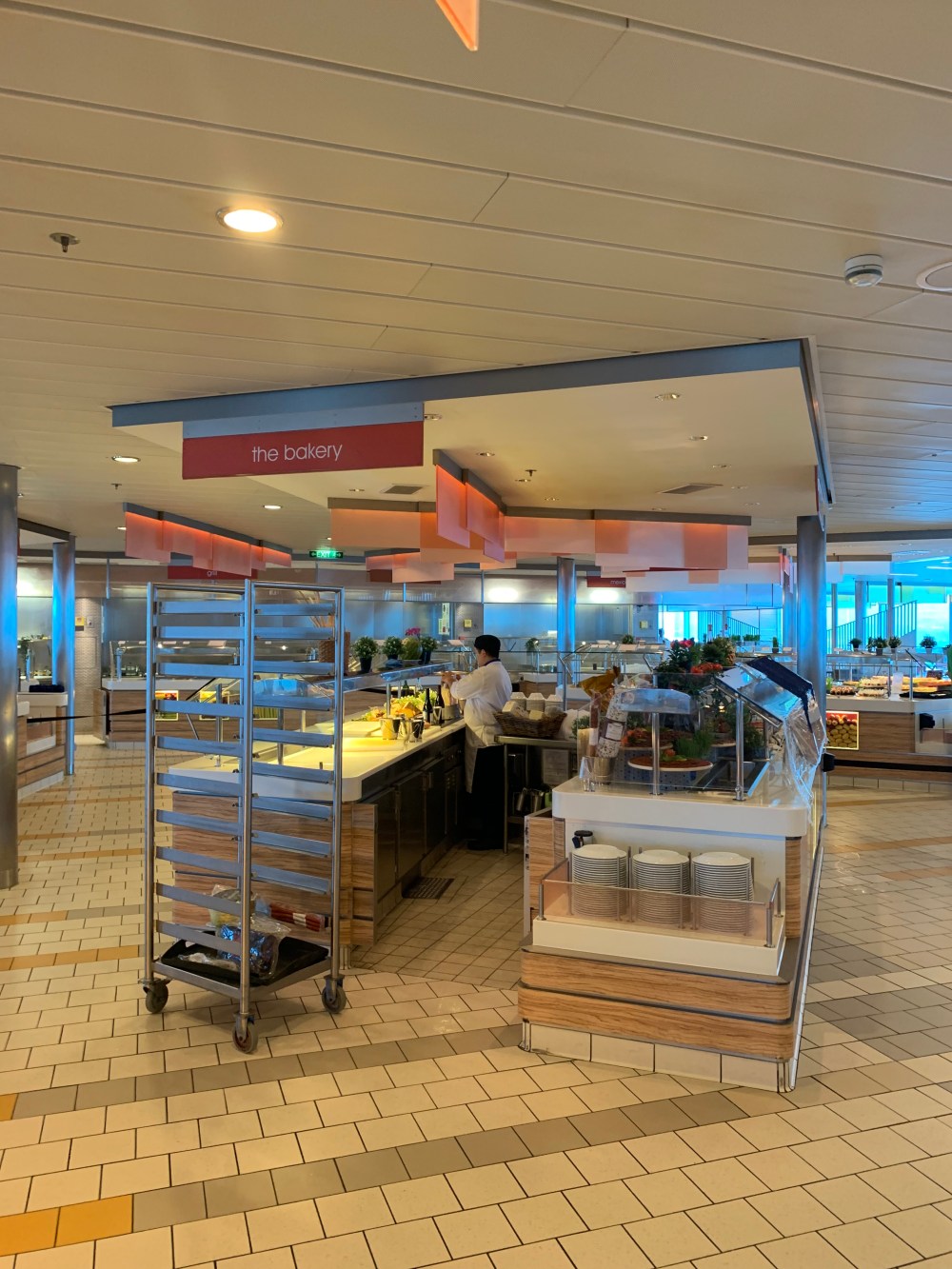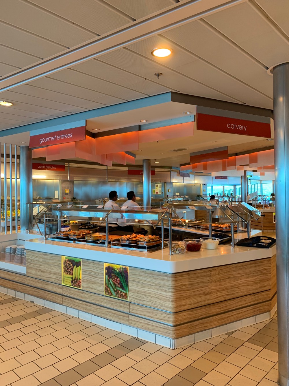 The buffet is called Oceanview cafe located at the back of the ship on deck 14. It has around 10-15 tables reserved for disabled on both sides of the buffet which is a big help and you can usually get a seat however unfortunately you do still get the oblivious abled bodies taking them up when busy but I must say the staff are pro active in telling them they cannot sit there.