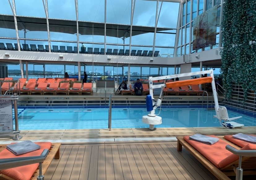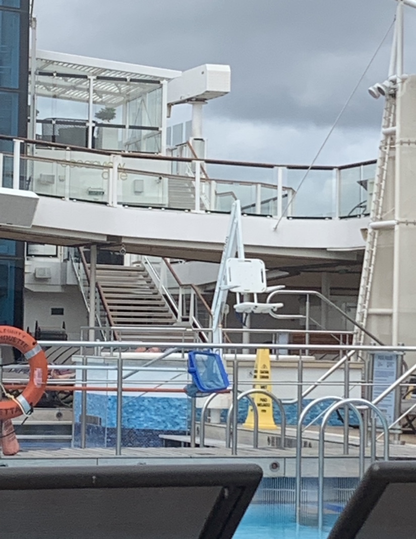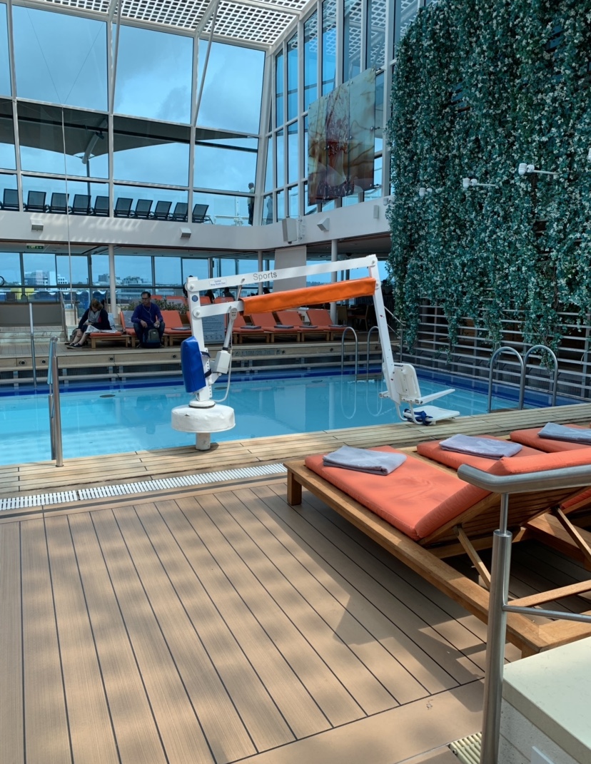 Also on deck 12 there is two outside pools which is split in the middle, only one has a hoist but again it’s very easy to access and staff available to assist.