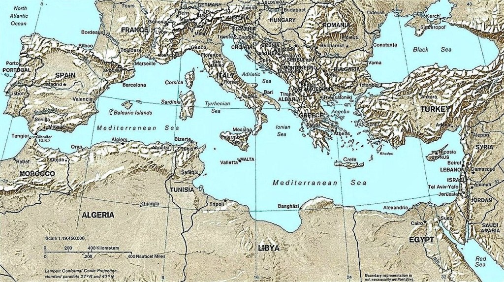 The Mediterranean countries are those that surround the Mediterranean Sea or located within the Mediterranean Basin.[1] Twenty sovereign countries in Southern Europe, the Levant and North Africa regions border the sea itself, in addition to two island nations completely located in it (Malta and Cyprus).