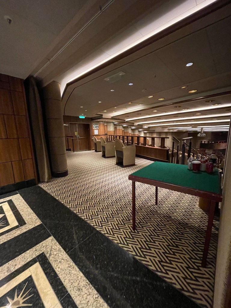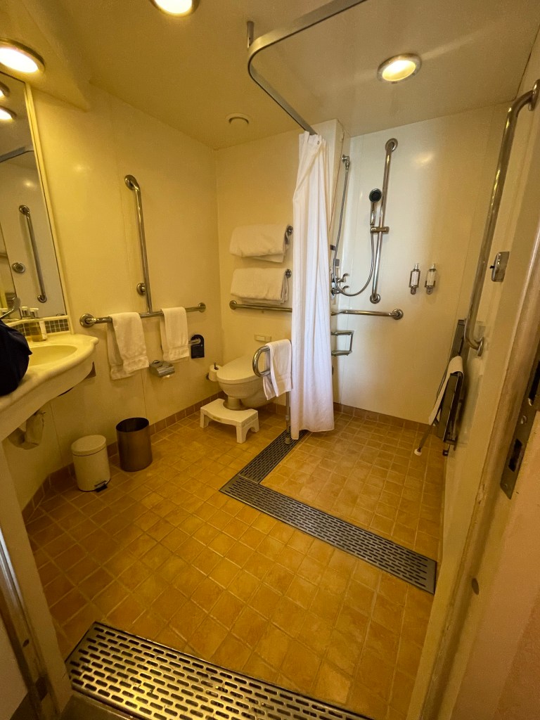 The theatre called Arena is on deck 6 and 7, it’s very large and on deck 7 as you can see there is plenty of space of wheelchairs and a companion, no complaints here.