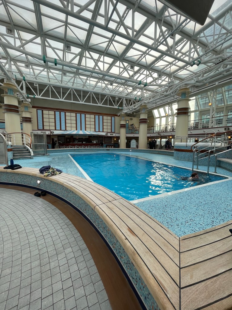 The main outside pool on deck 15 has a fixed hoist at the pool which you can use which is awesome but only if the weather is good, unfortunately they do not have a portable hoist which can be used in the inside pool so if like it was on our P&O Cruise, very cold you couldn’t use the pool.