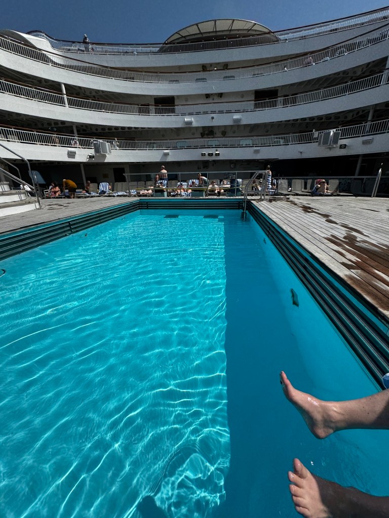 The only truly accessible option is the indoor pool, which does have a fixed hoist. However, on our cruise we hit a heatwave — 35°C outside — yet the retractable roof stayed closed the entire time. Inside, it became sweltering, almost like a sauna, making it uncomfortable to use for long periods. It was a shame, as the fresh air and open roof would have made it far more enjoyable.
