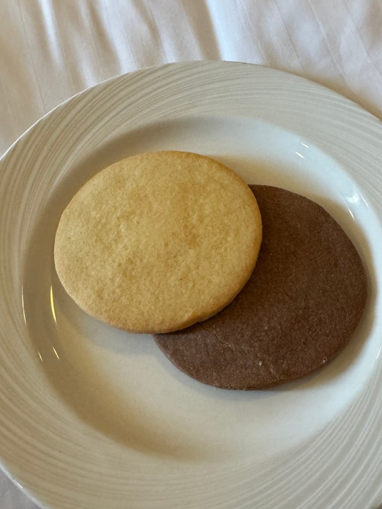 • Room Service – We ordered several times, but about half our orders were met with a quick phone call to say certain items weren’t available. We learned to always have a backup choice ready. Also… the cookies. Let’s just say the chef’s cookie skills could use some work — I’m no baker, but I could do better!