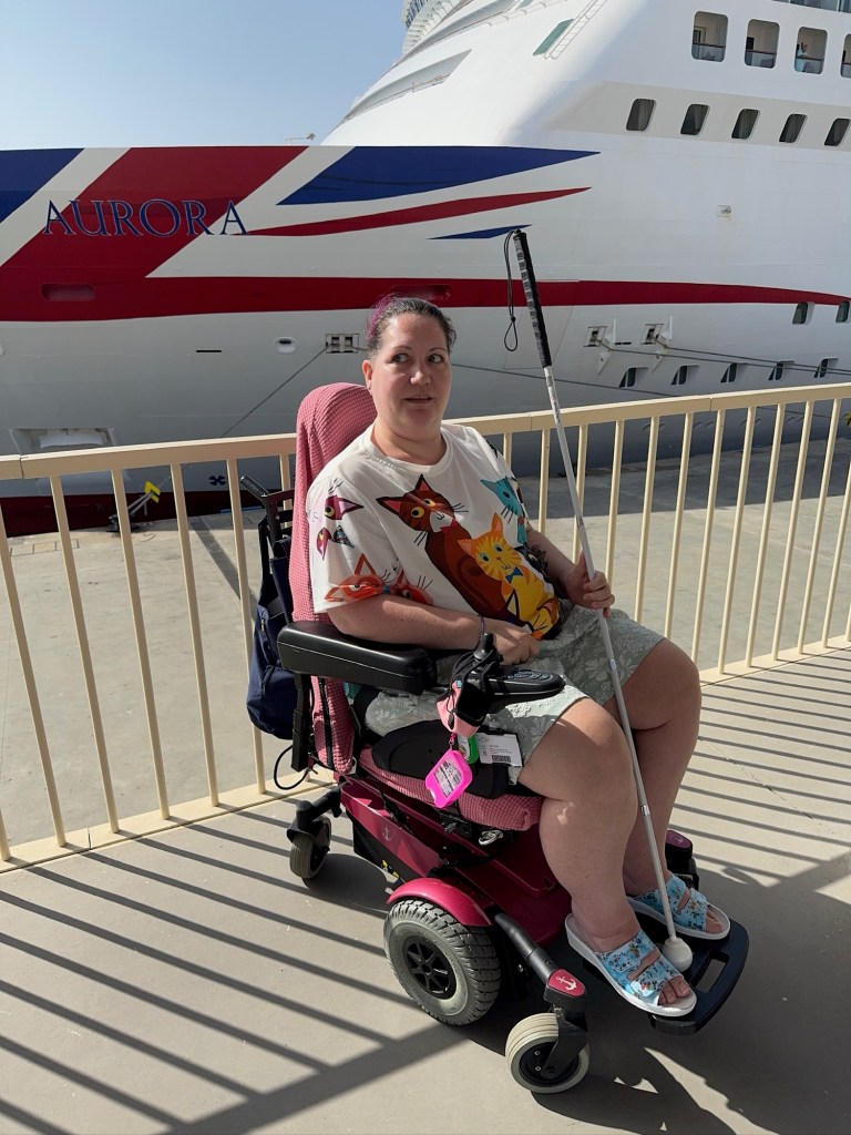 Aurora has her charm, but her layout can be a little higgledy-piggledy. This was my first cruise as registered blind, so navigation was trickier than before. On the positive side, the lifts are a really good size — better than those on some newer ships — which made moving between decks easier.