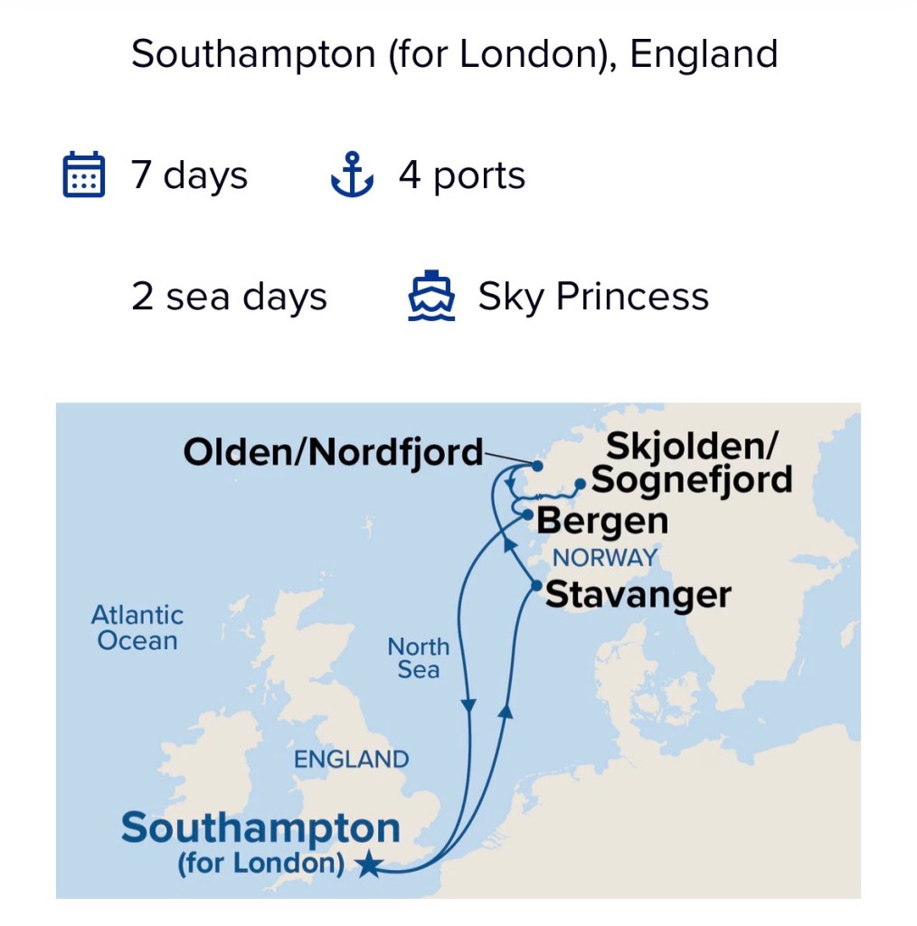 We are looking forward, carefully and realistically, to Sky Princess in May 2026, sailing to Norway, staying in an accessible Mini Suite (C432). It’s a cruise planned with intention, pacing, and accessibility at its core. Shorter. Slower. Kinder to my body. And still filled with anticipation.