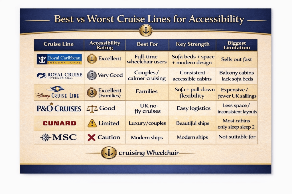 ⭐ Royal Caribbean = best overall accessibility